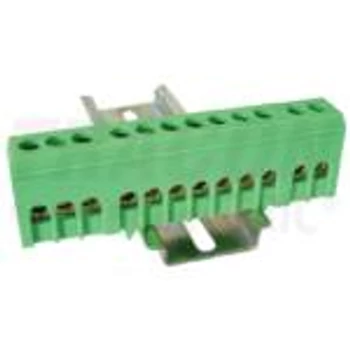 Szigetelt földelősín (N/PE), zárt,zöld 230/400VAC, 100A, 6×9mm, 12P, IP20